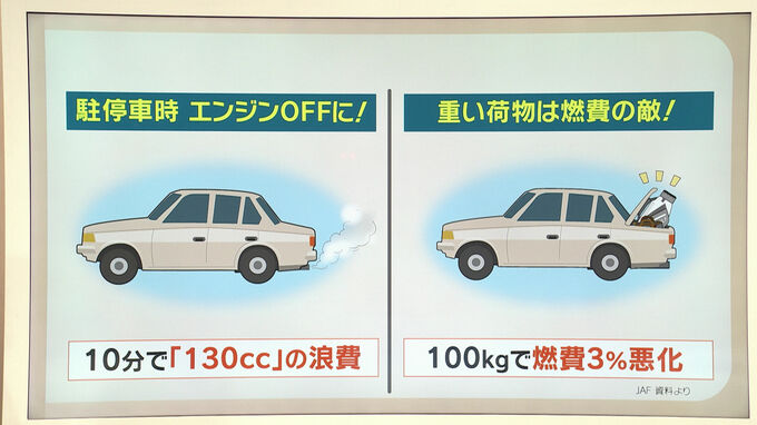 最近では車種によっては、エコドライブスイッチなど燃費の消費を抑える機能が搭載されていて、これを活用することで燃費の改善にもつながるということです。