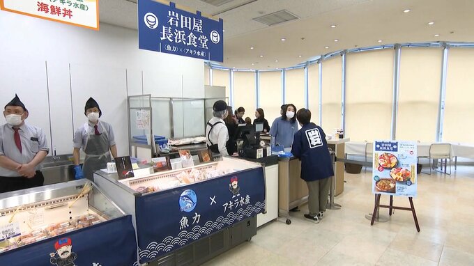 長浜鮮魚市場を支える『アキラ水産』と『魚力』がコラボし、イートインコーナー『岩田屋長浜食堂』を開設。
