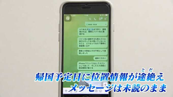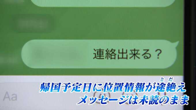 その後、3日目の帰国予定日にAさんの位置情報は途絶えてしまい、メッセージに既読がつかなくなったということです。