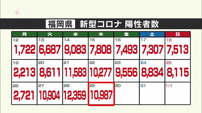 新型コロナ 新たに福岡1万987人 佐賀2006人陽性 2022年12月30日(金) 08:58 国内 新型コロナウイルスについて、福岡県は29日新たに1万987人の陽性を発表しました。佐賀県では2006人が陽性でした。福岡県の1日ごとの陽性者数を示すカレンダーです。29日は1万987人で、3日連…