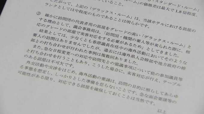「香原県議が議長に在任中は要人の訪問はありませんでしたが、過去に地方政府の幹部と打ち合わせが行われた事例は複数回ありました。部屋のランクは中程度で急な面会要請などの可能性がある限り、対応できる部屋を確保しておくことは当然です」