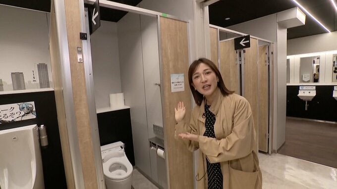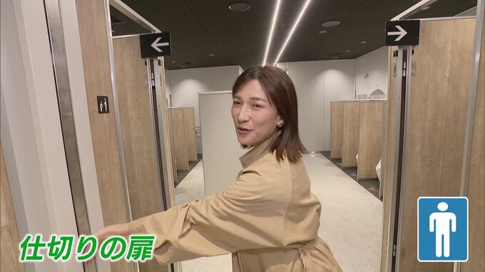 イベントの男女比に合わせて、男性用トイレ8か所のうち6か所を女性用トイレに切り替えられるように設計。