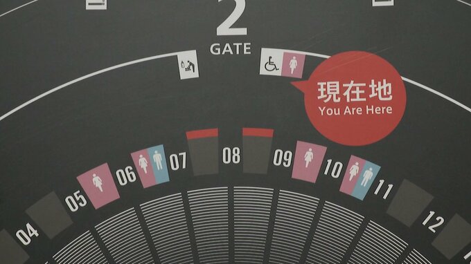 これまでは、内野側の通路に男女それぞれ8か所ずつ設置されていましたが、改修によってゲート側に女性用トイレを3か所増設しました。