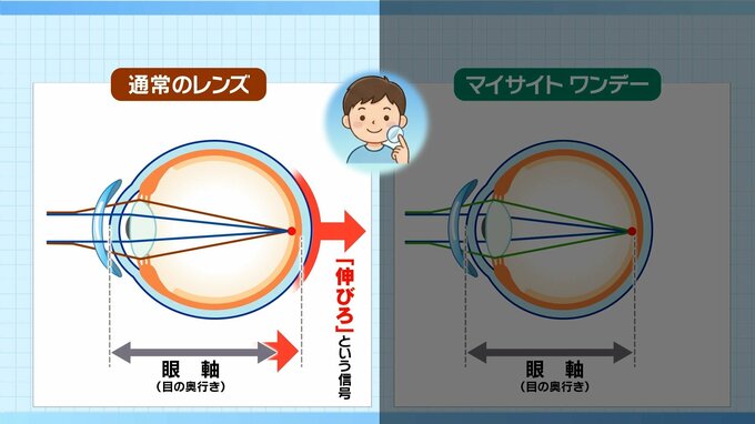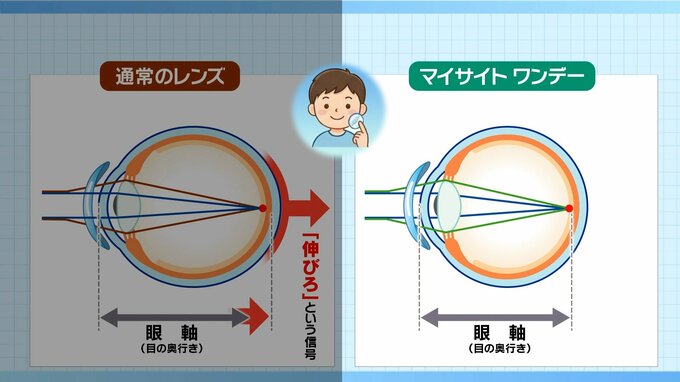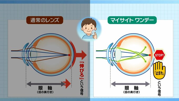 その結果、目に「これ以上伸びないよう止まれ」という信号を出し、近視の進行を抑制するということです。