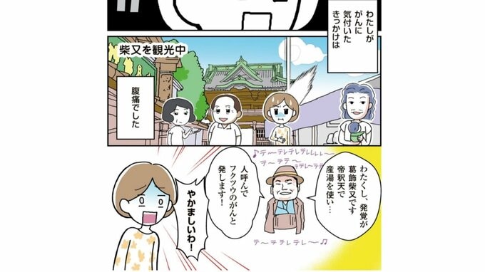 「福岡から東京に両親が遊びに来ていたので柴又に案内しようと。ところが柴又に到着したころから右のおなかがめっちゃ痛くなりまして、これは歩けんぞと」
