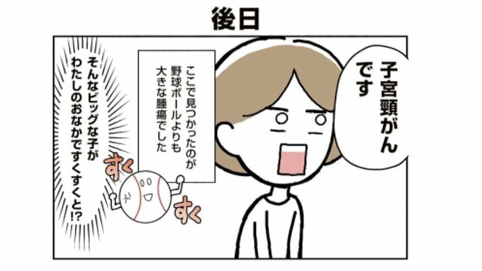 腫瘍は直径7.2センチ。野球ボールほどの大きさで、すでにステージIIIBまで進行していました。