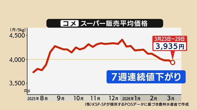 こうした”コメ余り”の状況は販売価格にも影響しています。