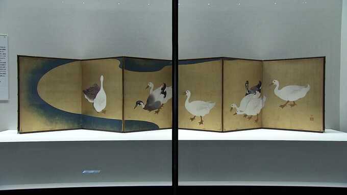 「水辺家鴨図屏風(みずべあひるずびょうぶ)」はアヒルが今にも動き出しそうに描かれ江戸時代の作品とは思えないほどの先進性を感じさせます。