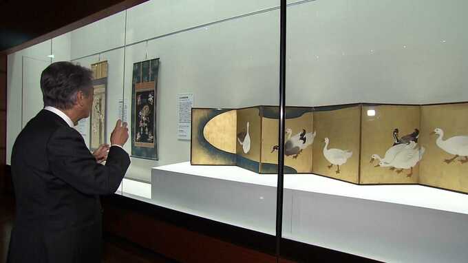 鈴木其一が描いた「水辺家鴨図屏風」