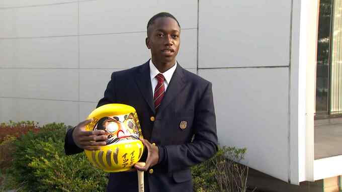 生まれ育った名古屋から新幹線で福岡にやってきたイヒネ選手。地元の幼なじみたちからもらっただるまと共に新生活がスタートです。