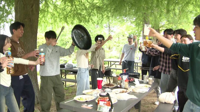 北九州市小倉南区にある花農丘公園のバーベキュー場は、家族連れや学生などで賑わっていました。