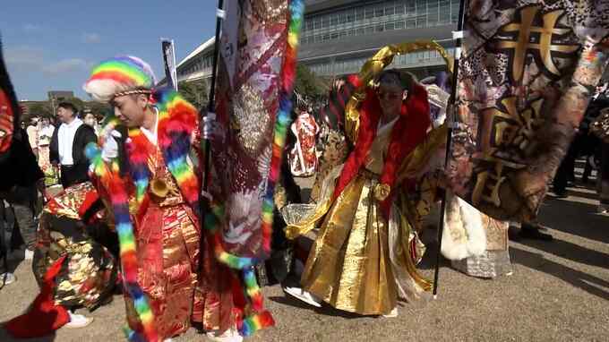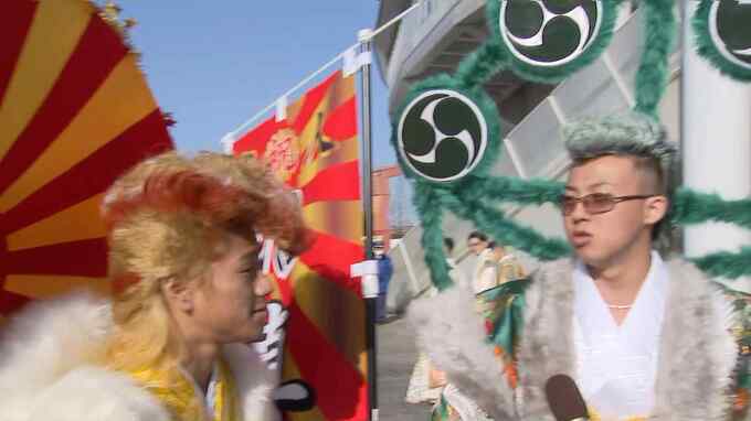 毎年、ド派手な衣装が話題となる福岡県北九州市。今年も一部の新成人が個性的で豪華けんらんな着物を披露した。