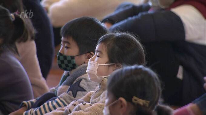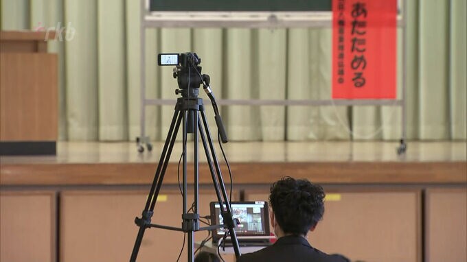 新型コロナとインフルエンザ対策のため2年、3年、4年生はオンラインで実施されました。今林校長は、「寒さに負けず、元気に安全に気をつけて過ごしましょう」と児童らに呼びかけました。