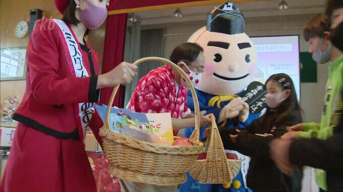 青森県の知事が、福岡県太宰府市の小学校を訪れ、青森名産のりんごについて特別授業を行いました。