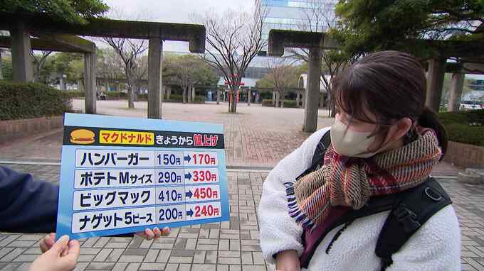 RKB正福里奈「マクドナルドの人気メニューハンバーガーは20円の値上げ、ポテトのMサイズは40円の値上げです」