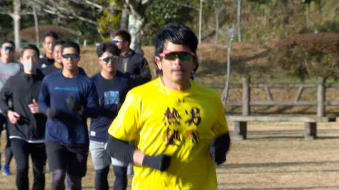 自主トレのテーマは「一年間戦い抜く体力作り」という嶺井選手、同時にメンタルも鍛えられているようです。笑いも絶えない熱男塾ですが、朝からランニングメニューに階段ダッシュと、下半身をいじめ抜きます。