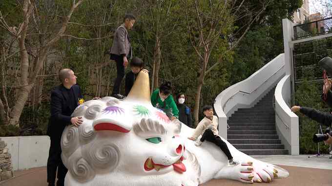 中村弘峰さん「最高ですね。どんな風に遊んでくれるかなということばかり考えて原型を作っていたので。ぜひこの狛犬の上で、登ったりはしゃいだりして遊んでもらいたいなと思います」