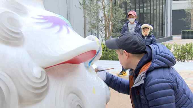 中村弘峰さん「きょう(2023年1月7日)は、大名の大狛犬の目入れ、最後の仕上げです」