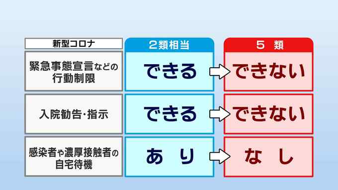 岸田総理の意向を受け厚労省は、専門家による「5類」引き下げの議論を始めました。現在の「2類相当」と、季節性インフルエンザと同等の「5類」は、何が違うのでしょうか?