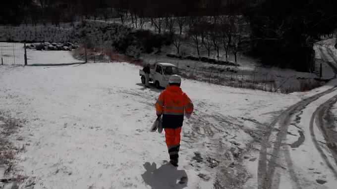 雪が降り、忙しくなるのがJAF。不安定な天気は、道路状況を急速に悪化させトラブルも発生。福岡県篠栗町の山間部、県道92号線を上っていくと…
