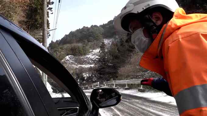 JAF福岡支部ロードサービス隊 中村聡宏さん「夜間の方がやはり気温が下がってくるので、今シャーベット状でも それが凍結したりしてくる。スタッドレスやチェーンつけていても過信しないように」