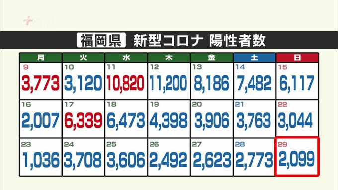 新型コロナウイルス 福岡で新たに2099人が陽性 3人が死亡 2023年1月30日(月) 01:07 国内 新型コロナウイルスについて福岡県は新たに2099人の陽性と3人の死亡を発表しました。福岡県の1日ごとの陽性者数を示すカレンダー、29日は2099人で先週の日曜日と比べ、1000人近く減少しました…