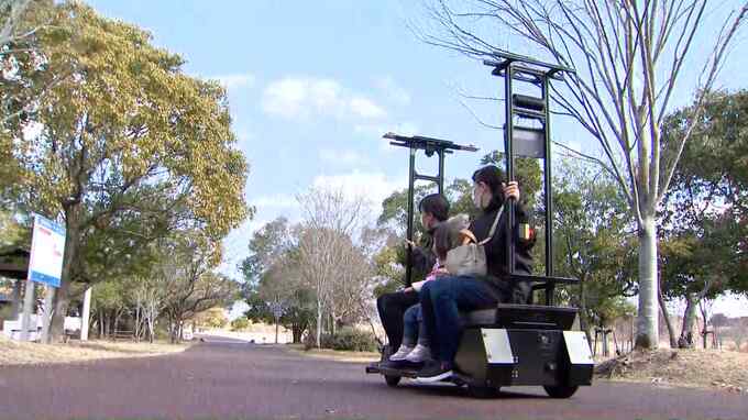 座ったまま散策できる“動くベンチ”が30日、佐賀県の吉野ヶ里遺跡公園に導入されました。運転手なしで自立走行し、来園客を乗せて園内を動き回ります。