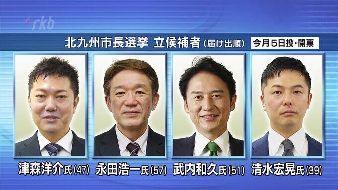 北九州市長選挙には4人が立候補していて、2月5日に投票と開票が行われます。