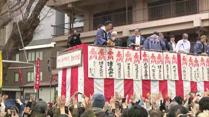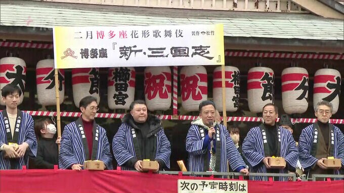 福岡市博多区の櫛田神社では、「豆まき神事」が3年ぶりに通常開催され、大勢の人が集まりました。歌舞伎役者の市川猿之助さんもゲストとして参加し、会場を盛り上げました。