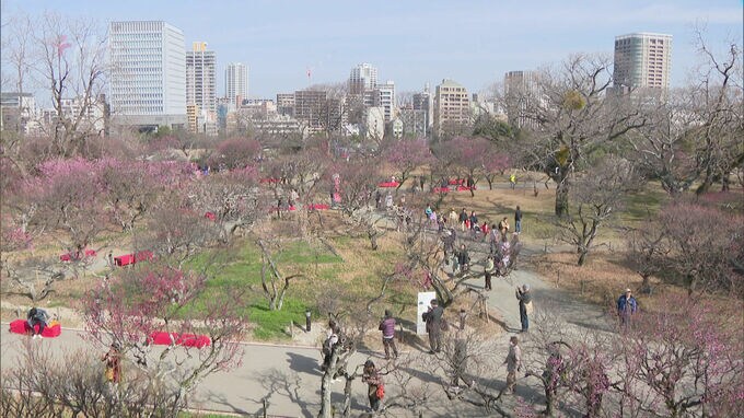 紅白の梅の花が見頃「福岡城 梅まつり」 舞鶴公園で3年ぶり開催 2023年2月12日(日) 14:37 国内 福岡市の舞鶴公園では「福岡城梅まつり」が3年ぶりに開かれていて紅白の梅の花が見頃を迎えています。「福岡城梅まつり」は11日と12日の2日間、福岡市中央区にある舞鶴公園の梅園で開催されています。園…