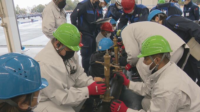 福岡市水道局の職員たちは、配水管と給水管を水漏れしないようにつなぐ方法を丁寧に教えていました。福岡市水道局によると、福岡市の昨年度の漏水率は2%と世界トップレベルにあり、「福岡市で学んだ技術を自国での課題解決に活かしてほしい」と話しています。