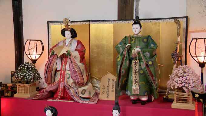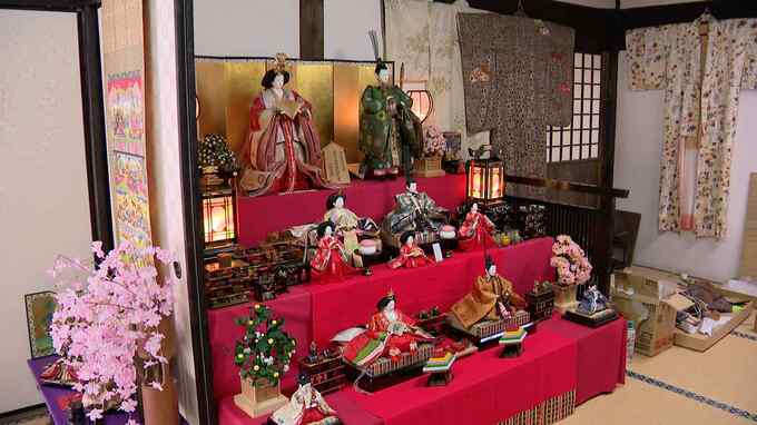秋月歴思堂 渡邊俊二さん「こちらの立ちびなは、今の天皇皇后両陛下がご成婚された際に献上されたおひな様になります。普通は博物館などでガラスケースのなかですけど、お客様に近くで見ていただきたいという思いから出させていただいております」