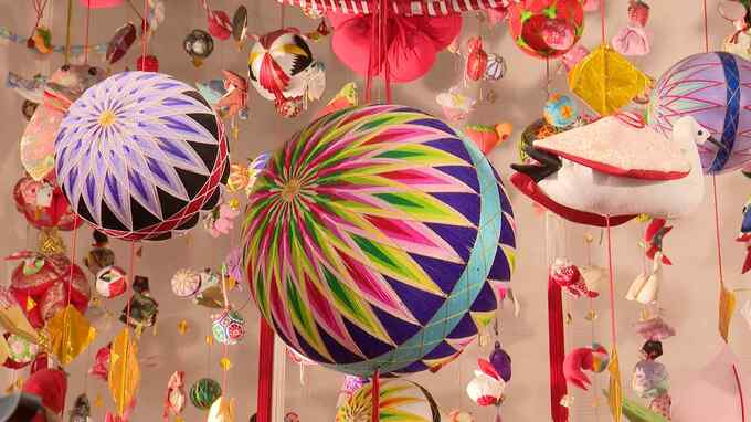 そして最後は水郷、柳川市の春の風物詩「さげもんめぐり」。さげもんは、女の子の健やかな成長を願い、着物の切れ端などで作った縁起物をひな人形と一緒に飾る柳川市の伝統的な風習で、江戸時代から続くとされています。会場の一つ、アンテナショップの柳川よかもん館では高さ約4メートルの巨大なさげもんを見ることが出来ます。
