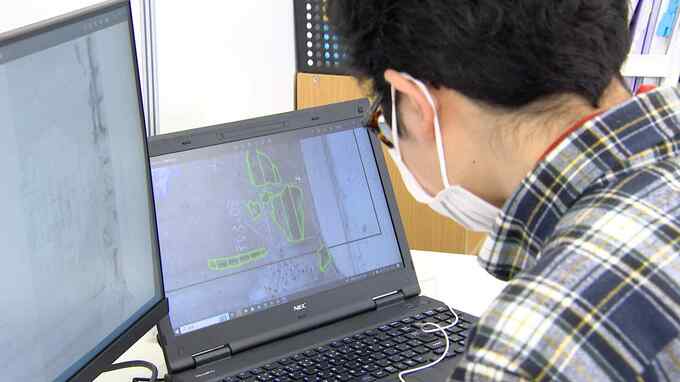 この問題を解決するため、オングリットホールディングスが開発したのが、「マルッと図面化」というシステムです。現場で撮影した写真をAIがつなぎ合わせ、さらに、画像からひび割れなどの損傷やチョークを読み取って自動で図面を作成してくれます。システムを導入したことで業務にかかる時間はこれまでの8分の1まで短縮されたといいます。