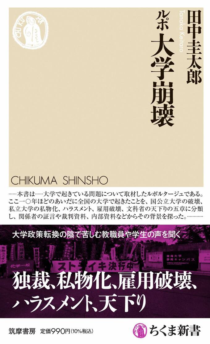 この話は、フリージャーナリストの田中圭太郎さんが取材して書いた「ルポ大学崩壊」(ちくま新書、税別900円)に出ていました。田中さんは以前、大分放送(OBS)で報道記者をしていて、番組の制作などで私もすごく親しくしていた、極めて誠実な記者です。2016年にフリーランスとして独立し、大学問題を一つのテーマとして選んで取材をしてきていて、雑誌やWebメディアなどで100本近くこういった記事を書いています。「にわかには信じられないようなトラブルが起きている大学が存在する」と言っています。