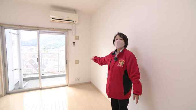高田住宅 児島美紀さん「こちらのお部屋は大きさが8畳、オートロックで鉄筋コンクリート、部屋の向きが全戸南向きになっています」