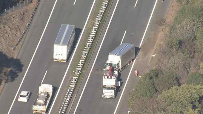 福岡県宮若市の九州道上り線で28日朝、トラック2台が絡む事故があり、一時、上り線の古賀IC~鞍手ICが全面通行止めになりました。