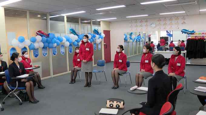 福岡市中央区にある航空専門学校です。採用試験を想定した模擬面接の授業で、本番さながらの緊張感が漂っていました。新型コロナの影響で航空業界はここ数年、客室乗務員の新規採用を控えていました。JALは去年、3年ぶりに採用を開始、ANAグループもこの春から4年ぶりに採用を再開しました。