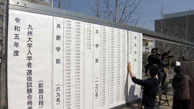 福岡市西区の九州大学伊都キャンパスでは、8日午前11時に合格者の受験番号が書かれた掲示板が並べられました。