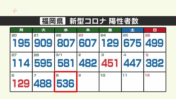 【新型コロナ感染者数:8日発表】福岡は536人、佐賀は97人陽性 2023年3月8日(水) 16:59 国内 新型コロナウイルスの情報です。福岡県は8日新たに、536人の陽性と1人の死亡を発表しました。前の週の水曜日を40人あまり下回りました。発表自治体別の内訳は、福岡市が128人、北九州市が78人など…