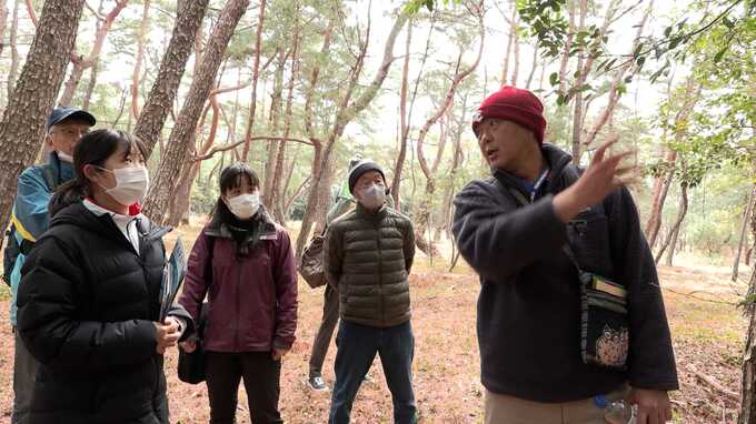 柚原さんたちが「虹の松原」を訪れたのは、植樹したクロマツをどのように守っていけば未来につなぐことができるかを学ぶためです。団体の発起人は、「海岸防災林」の再生には、柚原さんたち若い世代の力が欠かせないと言います。
