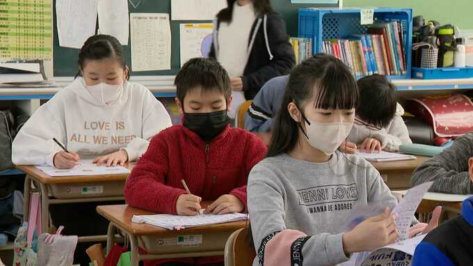 福岡市の小学校では13日もマスクをつけて授業が行われていました。
