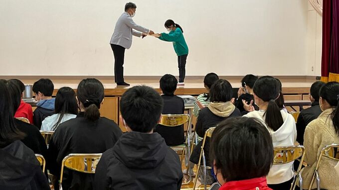 出前授業を行ったメーカーは去年から「めかぶ川柳コンテスト」を開いていて、今年は老司小学校が最優秀校に選ばれています。なお、コンテストで審査員めかぶファースト賞を受賞した5年生の山本真衣さんには、めかぶスープ100個が贈呈されました。