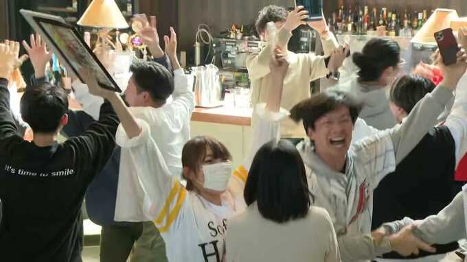 約1000本の桜が咲き始めている舞鶴公園。先週から営業を始めたバーベキューコーナーでは多くのお客さんが、桜や肉よりもスマホに見入っていました。また、いつもはホークスを応援している福岡市中央区の唐人町商店街も、朝から2台のテレビを設置し決勝戦を見届けました。