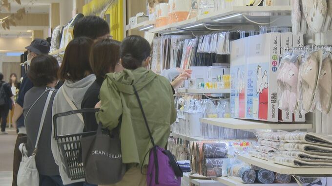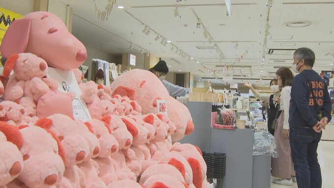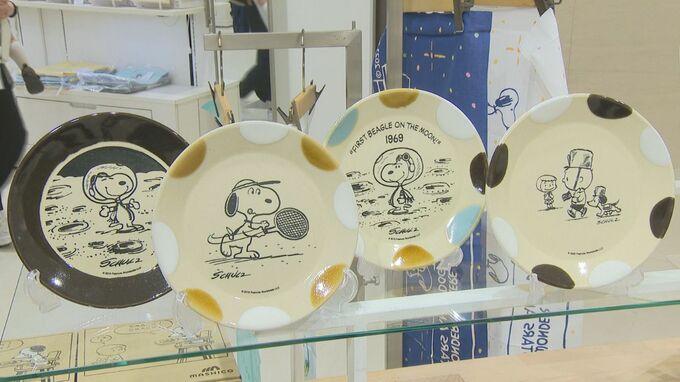博多阪急で23日から開催されている「博多スヌーピーフェスティバル」。会場では、ぬいぐるみやスヌーピーのイラストが入った食器や小物、さらに福岡限定の文房具など約4000点が販売されています。