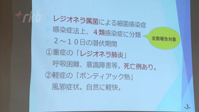 福岡県庁で開かれた講習会には県内の旅館や銭湯などから約130人が参加しました。この講習会は、筑紫野市の老舗旅館「大丸別荘」が、大浴場の湯を年に2回しか入れ換えておらず最大で基準値の約3700倍のレジオネラ菌が検出されたことを受けて実施されました。