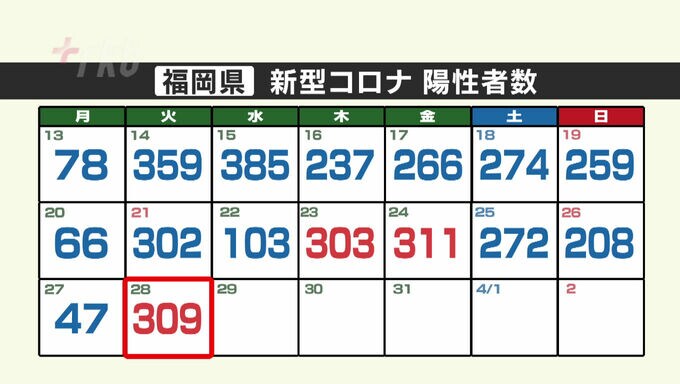 【新型コロナ感染者数:28日発表】福岡は309人、佐賀は41人が陽性 2023年3月28日(火) 18:06 国内 新型コロナウイルスの情報です。福岡県は28日、新たに309人の陽性を発表しました。前の週の同じ曜日より7人増えています。発表自治体別の内訳は、福岡市が154人、北九州市が36人、久留米市が23人…