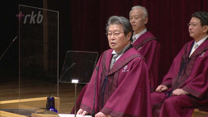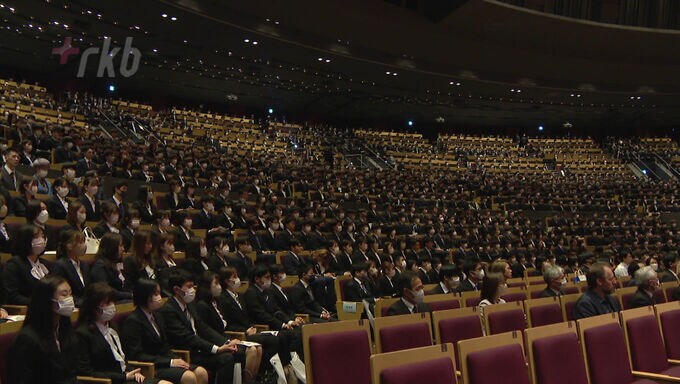 福岡市西区の九州大学伊都キャンパスでは、午前中に大学院、午後から学部の入学式がそれぞれ開かれました。新型コロナの影響で、学部の入学式は去年まで2部制とし人数を制限していましたが、今年は4年ぶりに12学部の新入生約2600人が一堂に出席しました。