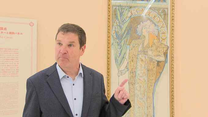 展覧会コーディネーター ヴァレンティンさん「ミュシャは女性を描くのが好きで、マカロニ・スパゲッティみたいな髪。これが後に人々からミュシャスタイルと呼ばれるようになりました」