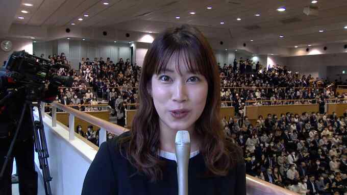 RKB坂本くるみ「新入生の入場です。生徒たちは、マスクは着けていません。表情からは期待と緊張がうかがえます」